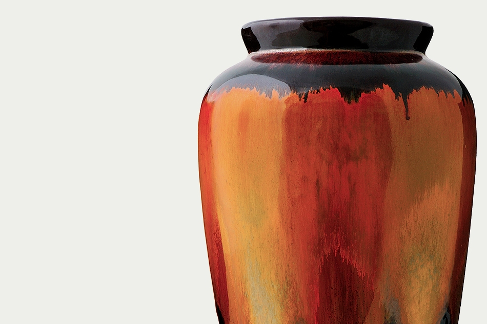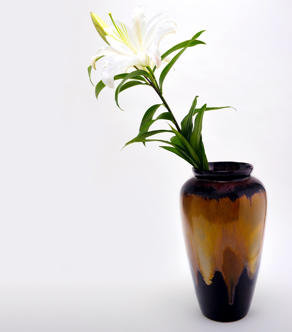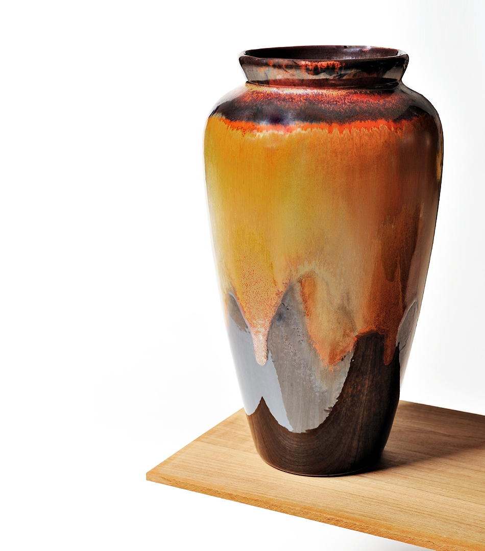 以美濃窯獨特的釉色交融出華麗炫彩,大器的瓶體非常適合成為居家或場所布置的視覺重點,論色澤或外型均為花器中的精品。