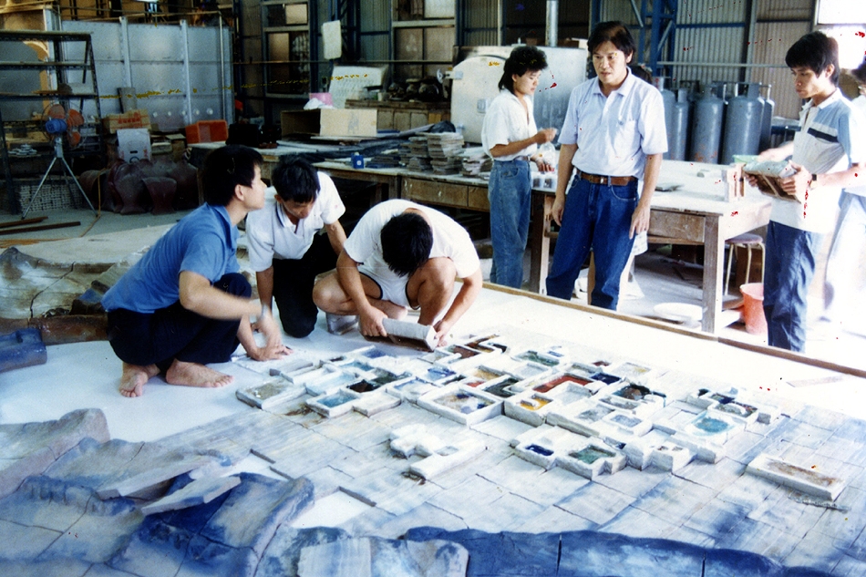 1989年完成,是朱邦雄博士的第一面藝術陶壁,也是國內第一座結合建築和大型藝術的作品,陶壁採「傳承」概念,以「補破鍋」的民俗呈現,一片片鐵片象徵一代接一代的傳承。