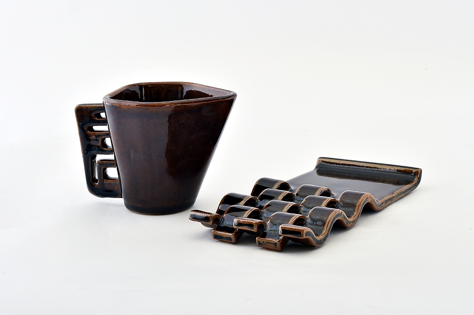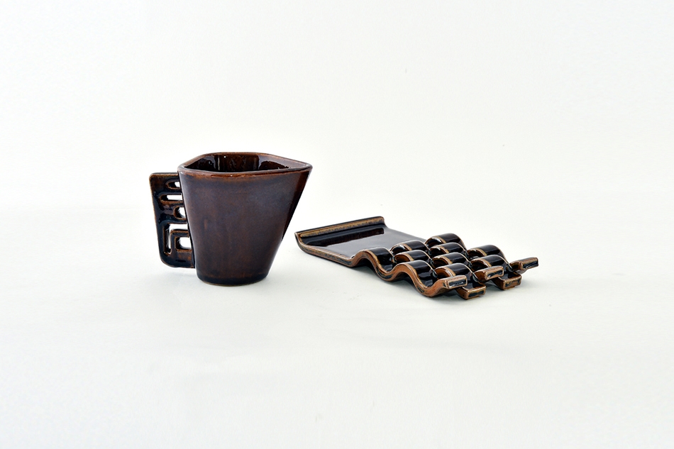 This work is composed by the “Kaohsiung” word-shape ship mug and wavy cup holder. The mugs was a bow shape, such as the ship sail into the sky, the grip is half of the “Kao” word of the name of Kaohsiung, holding the Kaohsiung banner towards the international arena; a symbol of the snack tray of the waves, in addition to the clear visual images can also be placed in the snack or tea-things, taking into account the utility function. As an international city, Kaohsiung is the only "dual city" in Taiwan — contains the airports and seaports, and connects to the outside world frequently. Using coffee as a medium expresses the atmosphere that Kaohsiung has no border and contains a wealth of artistry.